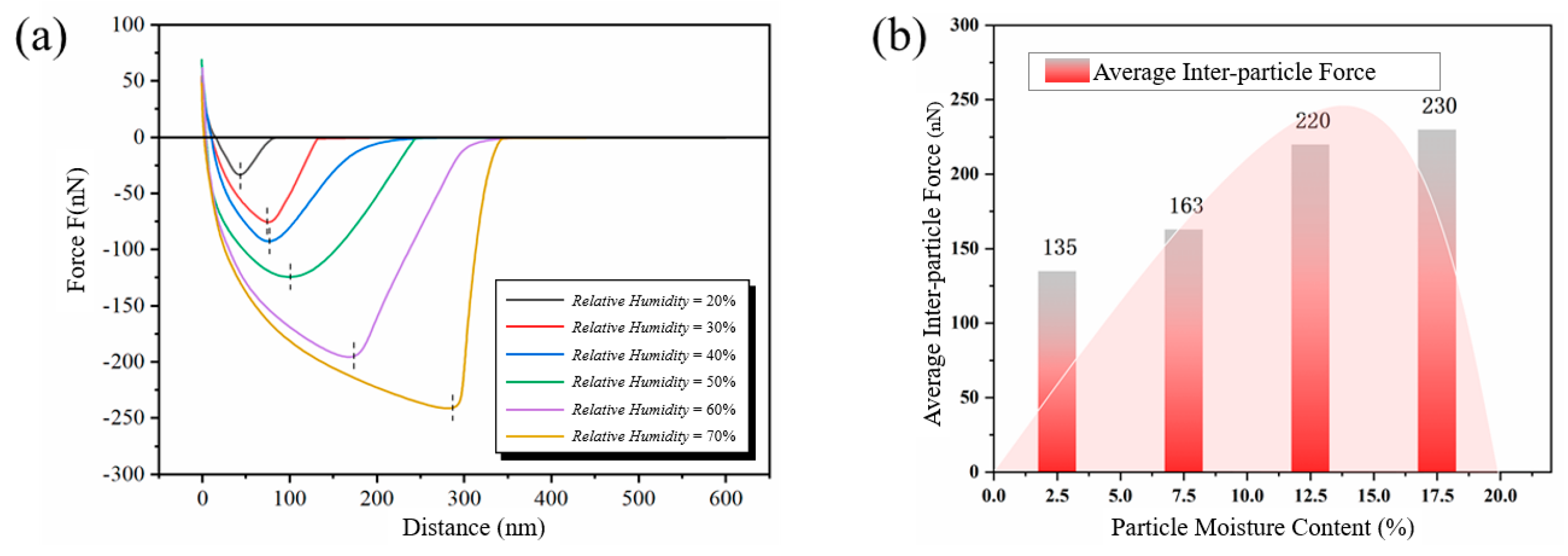 3.2. Variation in Interparticle Adhesion Forces at Different External Water Contents