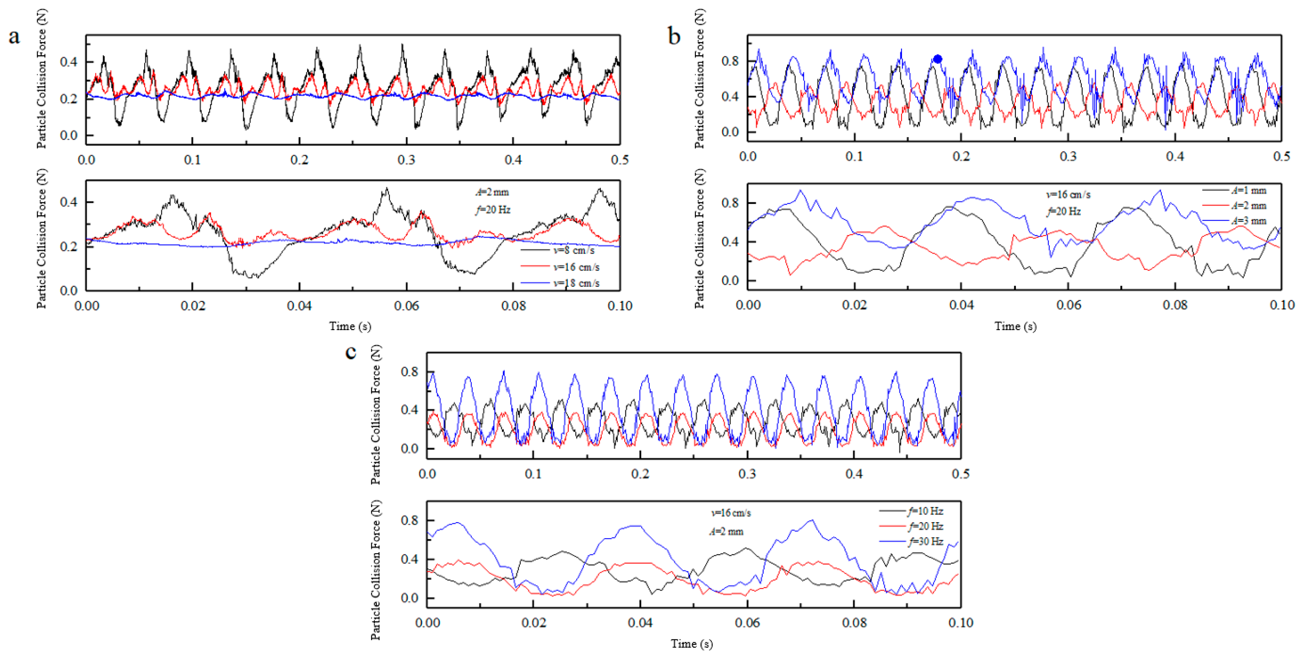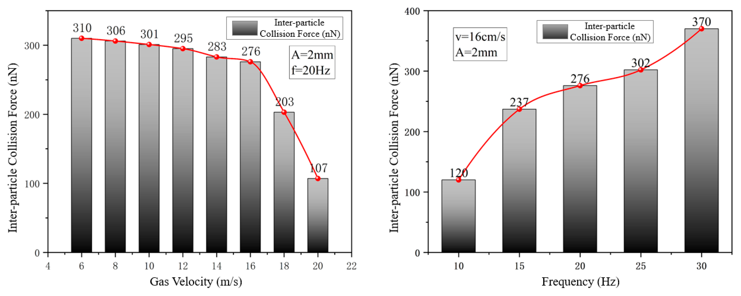 3.3. Variation in Interparticle Collision Forces Under Different Operating Parameters