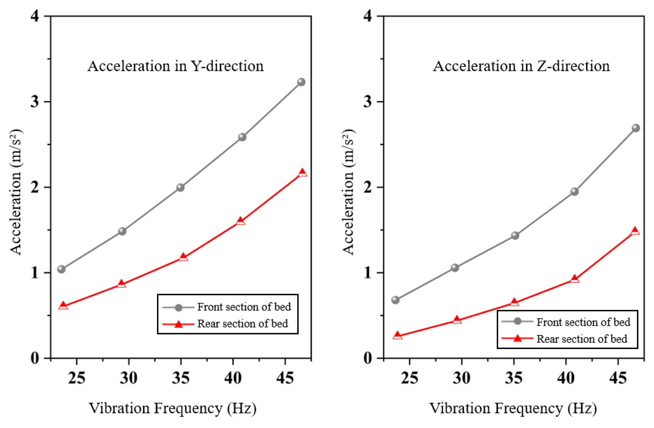 3.4. Vibration Characteristics at Different Locations in the Bed Layer