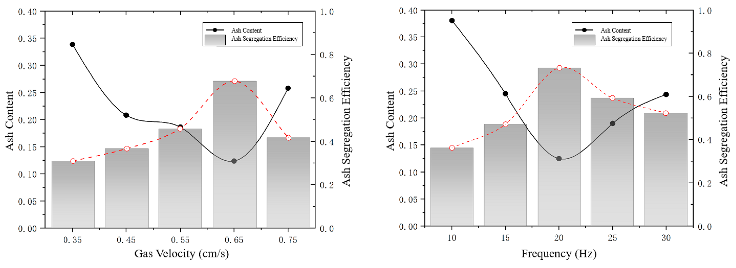 | S | Ash separation efficiency index. A higher value indicates better separation performance |