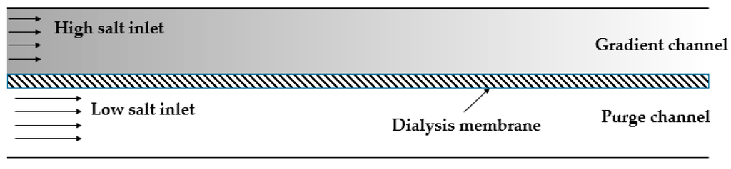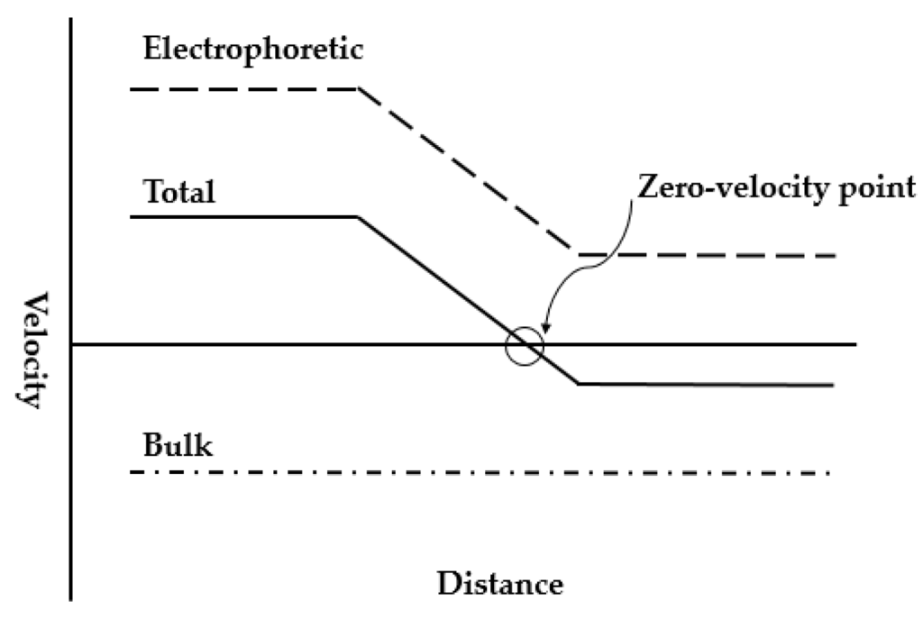 The early application of conductivity gradient for protein concentration came from Ivory’s group [68]. They used a chamber that was divided into compartments by a dialysis membrane (Figure 4). Buffers of different conductivity were placed in each section. The species with low molecular weight could pass through the membrane, creating the conductivity gradient when the voltage was applied. A convective force was employed to balance the electrophoretic velocity of proteins. The basic principles of this technique combining electric field, fluid field and mass transportation, were described as well.