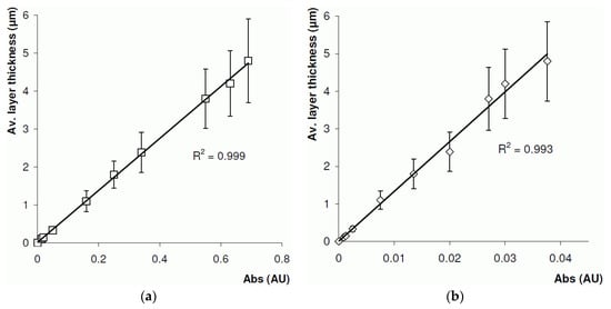 - Lobo, R.; Pereira-da-Silva, M.; Raposo, M.; Faria, R.; Oliveira, O. In situ thickness measurements of ultra-thin multilayer polymer films by atomic force microscopy. Nanotechnology 1999, 10, 389–393. [Google Scholar] [CrossRef]