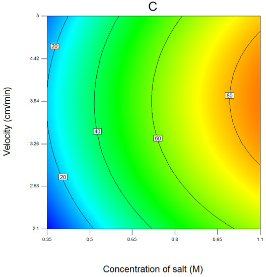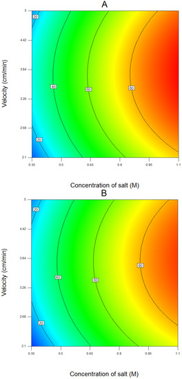 The experimental ranges used for these factors included (0.35–1.35 M) for final concentration of salt in elution step, (1.11–5.98 cm/min) for flow velocity, and (9.88–35.1 CV) for length of gradient. All the buffers were prepared using ultra-pure water (Barnstead easy-pure RODI, Fisher Scientific), filtered with a 0.45 µm membrane and degassed prior to use.