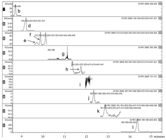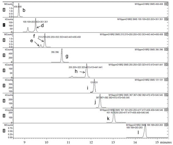 After characterizing the individual behavior of each analyte, we analyzed a multi-standard solution (full scan mode); an example of the result is provided in Figure 2.