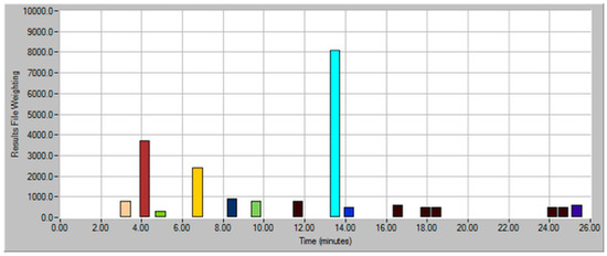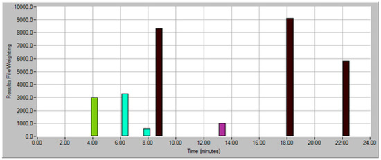 Olfactometry data were generated using AromaTrax™ V.10.1 software (MOCON, Round Rock, TX, USA). Recorded parameters included an aroma descriptor (“note”) and perceived intensity. The area under the peak of each aroma note in the aromagram is calculated as width × intensity × 100, where the width is the length of time (min) that the aroma persisted, in minutes. ADA was performed by analyzing successive dilutions of the same sample on the AromaTrax system V 10.1 (MOCON, Round Rock, TX, USA). The results files created have information about each aroma note such as elution time, intensity, and aroma descriptors. This information was combined into an ADA aromagram using a dilution and intensity weighting model. In this model, each peak in the results files that match a peak in the master file (Dilution Factor 0—Neat) is added to the ADA file based upon the intensity, multiplied by the dilution factor. For example, for a peak found in all 5 dilutions with intensities 90, 75, 45, 35, 5 and dilution factors of 1/2, 1/4, 1/8, 1/16, 1/32, the final intensity would be: (90 × 0.5) + (75 × 0.25) + (45 × 0.125) + (35 × 0.063) + (5 × 0.031) = 72. These values were then plotted in an analog manner, with % full-scale intensity vs. time.