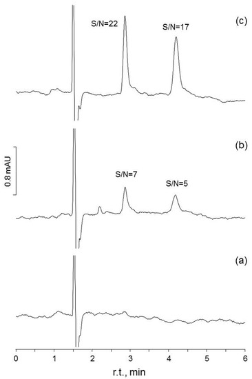 In chromatographic methods, the use of the signal-to-noise (S/N) ratio is probably the most widespread procedure applied to assess LODs [3,7,8,10,14]. This approach requires working at the minimal attenuation of the chromatographic signal, and the S/N is determined by comparing the analytical signals at known low concentrations with those of a blank sample. The noise is taken as an estimate of the blank standard deviation, and a concentration that gives a peak with an S/N equal to two or three is taken as the LOD. However, the measurement of the noise is not always trivial, and it is often subjective and highly variable. Nowadays, instrumentation software of chromatographic instruments allows this value to be auto-integrated, measuring the baseline at a pre-fixed time interval near the analyte peak.