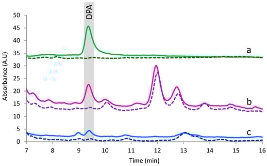 3.2.3. Effect of Extraction Solvent on the DPA Extraction from the Sampler