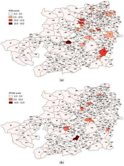 Among the assessment findings, the highest pollution rates were detected near industries and Wastewater Treatment Plants (WWTPs) as could be expected. Moreover, only in one municipality were all the four compounds detected together, and that was near the airport where, as it is known from the literature, aqueous film-forming foams (AFFF)—foams with fluorinated chemicals—can be used [3].