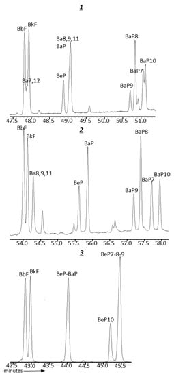 | Ba8,9,11 | 8,9,11-Trimethylbenz(a)anthracene | 49.03 | 1.311 | BeP | Benzo(e)pyrene | 55.61 | 1.306 | BeP | Benzo(e)pyrene | 44.04 | 1.411 |