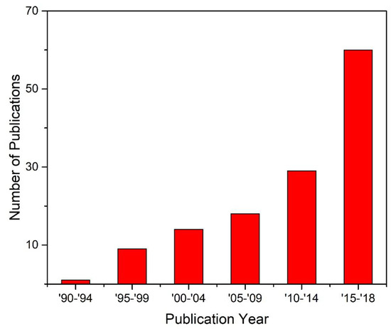 State-of-the-art electrolytes are typically based on LiPF6 in a mixture of linear and cyclic carbonates for optimum conductivity reasons. The feasibility of separation and both qualitative and quantitative analysis of various linear carbonates by GC utilizing an argon ionization detector was first reported in 1961 by Gudzinowicz et al. [154]. However, the application of chromatographic methods in the early stages of LIB research was rare. A brief summary of the publication numbers researched by the authors of this review is shown in Figure 5. Especially the utilization of GC techniques to analyze LIB electrolytes increased drastically, which will be reviewed in subchapters concerning the respective analyses and instrumentations. Next to the classically applied hyphenation techniques (e.g., LC hyphenated to conductivity detection or GC-FID for liquids or GC-TCD for gases), a large variety of separation-detection combinations was reported to comprehensively target the analytical questions of interest in the respective study (i.e., quantitative analysis, high-sensitive detection, structural elucidation, routine analysis, etc.).