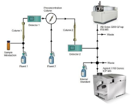 Experimental setup of a 2D-IC system hyphenated to ESI-MS and ICP-MS according to Menzel et al. [178]. Published by The Royal Society of Chemistry.