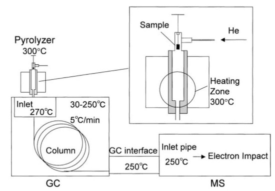 Schematic depiction of a typical Py-GC-MS system from Ogumi et al. Reprinted with permission from [182], Copyright 2001 Elsevier.