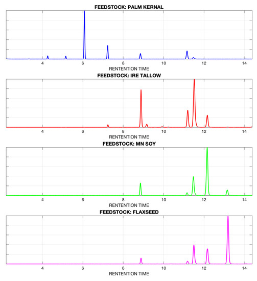 - Flood, M.E.; Connolly, M.P.; Comiskey, M.C.; Hupp, A.M. Evaluation of single and multi-feedstock biodiesel-diesel blends using GC/MS and chemometric methods. Fuel 2016, 186, 58–67. [Google Scholar] [CrossRef]