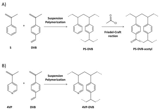 Hydrophilicity can be introduced by chemically modifying the hydrophobic polymer (i.e., PS-DVB) with polar functional groups or by copolymerizing with polar monomers. Figure 1 shows the typical synthetic approach used to obtain hydrophilic polymeric sorbents through chemical modification (A) and copolymerization (B).