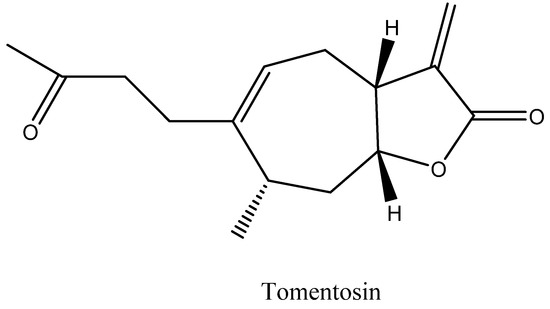 Tomentosin is a natural sesquiterpene lactone isolated from various aromatic medicinal plants, as reported in several studies. Indeed, Table 1 summarizes the main natural sources rich in tomentosin.