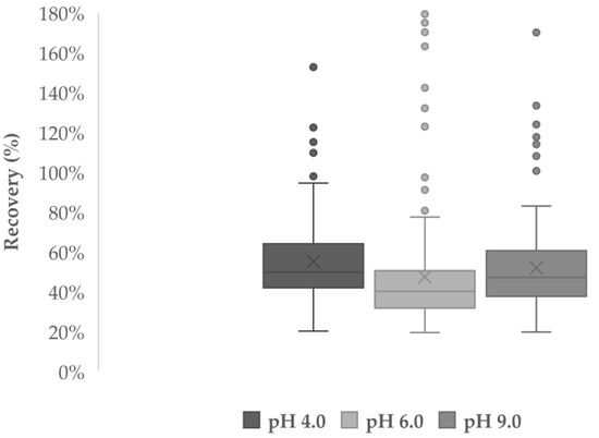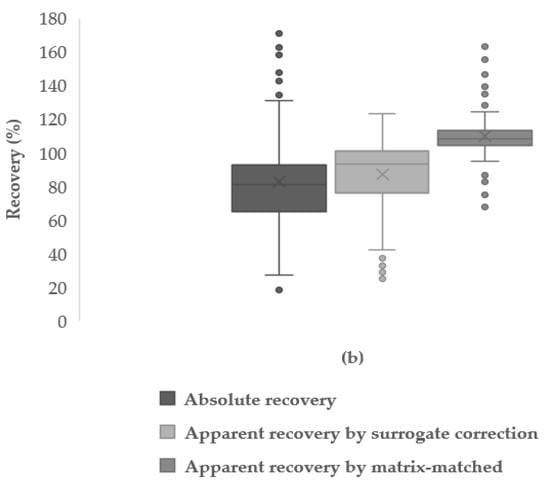 3.4.3. Absolute and Apparent Recoveries