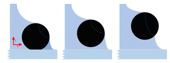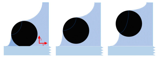 When the gas–liquid interface passes through the particles, the surface tension is generated and perpendicular to the gas–liquid interface [11,12].