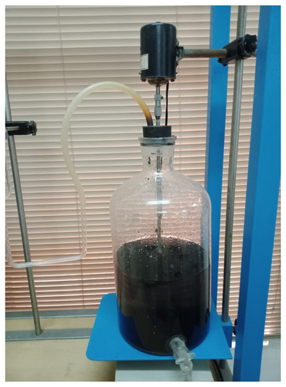 An anaerobic batch reactor having dimensions of length 50 cm, diameter 15 cm and a capacity of 10 L was used in the experiment, as shown in Figure 2. An anaerobic sludge process was carried out in the batch reactor. Three steps were involved in the process: in the first step, 5 L of beverage industrial wastewater effluent was added to a single batch reactor; in the second step, 3 mg/L of activated carbon powder (200 mesh, Ash 6% (max)) was added to remove odor and pollutants by mixing it for 3 h.