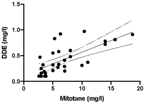 Most importantly, when the DDD concentration values were plotted against DDE values, a significant correlation was observed (p < 0.0001, r2 = 0.4712; Figure 5).