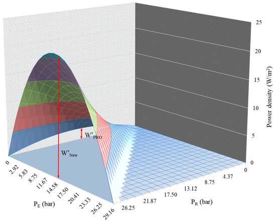 Equation (9) is the maximum power density that is achieved at the external pressure of and retarded pressure of , respectively.