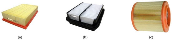 The first filtration stage is then an inertial multi-cyclone filter, and the second a porous barrier in the form of a cylindrical pleated paper insert, which is the dominant material that filters air sucked in by internal combustion engines. Filter papers are characterized by high efficiency (over 99.5%) and accuracy—over 5 µm, but low water absorption (in the range of 200–250 g/m2), which forces designers to construct filters with a large paper surface [12,20,21]. Modern air filters use filter cartridges made of filter paper or pleated nonwoven fabric (Figure 1), due to the fact that the largest possible surface of the paper is obtained in a limited space in the engine compartment.