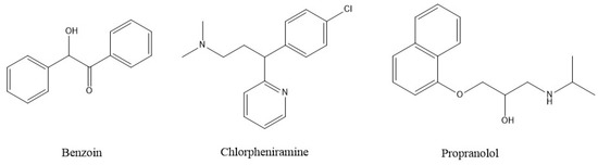 As described above, the model structure of cAGP was generated using hAGP as a template, and then the generated structure was validated with another modeling server. Subsequently, each enantiomer of three compounds, benzoin, chlorpheniramine and propranolol, was simulated and docked to a certain cavity on the generated model structure of cAGP (Figure 2).
