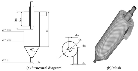 - Ying, R.; Yu, J.; Wang, W.; Zhang, T.; Feng, J.; Du, S. Optimization of structural and process parameters for fine particle classifying hydrocyclone. J. Mech. Eng. 2017, 53, 124–134. [Google Scholar] [CrossRef]