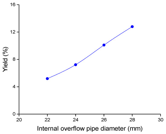 3.2.1. Experimental Analysis of the Influence of the Internal Vortex Finder Diameter on the Separation Performance