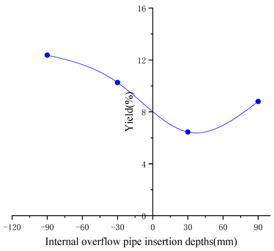 | Insertion Depth of Internal Vortex Finder (mm) | −45 μm (%) | Overall Efficiency (%) | Cut Size (μm) | ||
