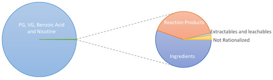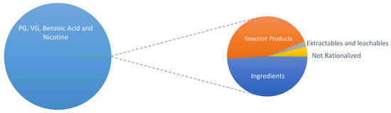 Regulators and other public health organizations are also interested in addressing the concern that there may be uniquely harmful constituents in the aerosol of ENDS products. On 5 August 2019, the FDA proposed the addition of 19 ENDS-specific chemicals to the HPHC list [14]. These proposed additions include some flavorants, glycerol (vegetable glycerin or VG), and propylene glycol (PG), which are constituents for many ENDS products. While the expanded HPHC list included some ENDS-specific constituents, it does not fully encompass the range of ingredients used in ENDS formulations or constituents present in ENDS aerosols. Formulation ingredients are unique to each ENDS product and multiple ingredients may react to form a wide range of reaction products, similar to reaction chemistry previously observed with a wide range of food grade flavors [25]. Erythropel et al. reported data that indicated that primary constituents and flavorant aldehydes may react with each other to form acetals of PG and VG [26,27,28]. It is plausible that in addition to these reactions, which require mixing and time, other reactions could take place as a result of heating, contact with the heating coil material, or increased exposure to water and oxygen during aerosol formation. In addition, flavorants and extractable and leachable (E&L) compounds that could be transferred to the aerosol should be evaluated as well.