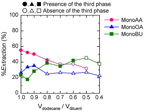 3.2.3. Effect of Diluent Composition of the Organic Phase