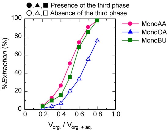 3.2.4. Effect of Phase Ratio of the Organic and Aqueous Phases