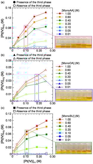 - Maeda, M.; Narita, H.; Tokoro, C.; Tanaka, M.; Motokawa, R.; Shiwaku, H.; Yaita, T. Selective Extraction of Pt(IV) over Fe(III) from HCl with an Amide-Containing Tertiary Amine Compound. Sep. Purif. Technol. 2017, 177, 176–181. [Google Scholar] [CrossRef]