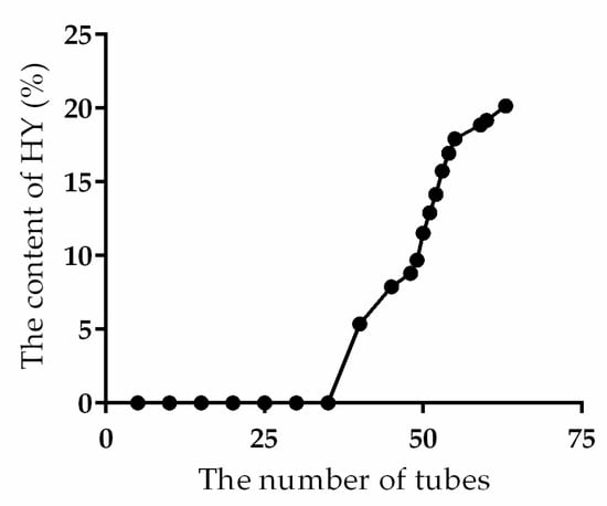 The leakage curve. Note: number of tubes meant the elution solution was collected in a 5 mL tube and the content of HY in each tube was determined.