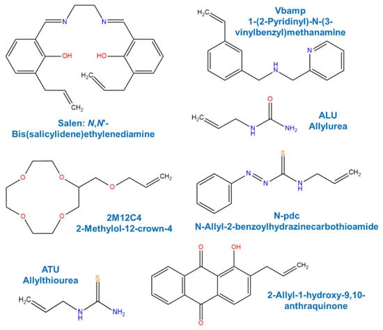 Other functional monomers used in the synthesis of IIP [38,52,55,56,57] were found, which have in their structure the oxygen, nitrogen, or sulfur atom as electron donors (Figure 5).