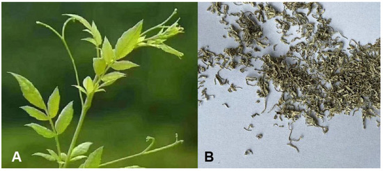 Ampelopsis grossedentata is distributed in southern China (especially Hubei, Hunan, Guangxi, Guangdong and Fujian) and other countries [1]. Its dried tender leaf is called “Vine tea” or “Berry tea” in Chinese [2,3,4] (Figure 1). The tea has been used as a detoxifying beverage by China’s Tujia population for many years. In 2013, it was approved by Chinese authorities as an edible material [5]. With the onset of the COVID-19 pandemic, the tea has become widely consumed by Chinese people (including the Han population) to enhance virus prevention measures.