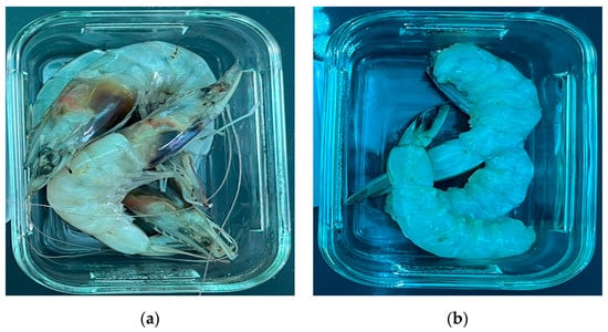 Shrimp picture used in the experiment: (a) With shrimp intestines and heads; (b) Without shrimp intestines and heads.