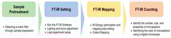 Microplastic analysis was performed using a Fourier-transform infrared spectroscopy (FTIR) microscope (IN10MX, Thermo Fisher, Scientific Inc, Waltham, Massachuetts, USA), and through a digital microscope (DSZM-7045T, Dongwon Industry, Seoul, Korea). The microplastic analysis settings in the FTIR microscope are shown in Table 1. Figure 3 shows the results of analyzing microplastics using the FTIR microscope.