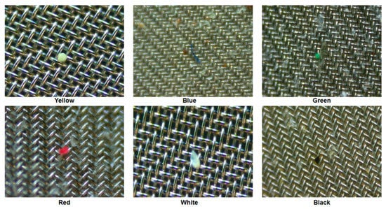 The colors of microplastics are similar to the previous pattern: blue (62 to 65%), white (12 to 17%), green (8 to 9%), black (8 to 7%), red (3%), yellow (1 to 3%) and gray (0 to 1%), it was confirmed that blue color was the most dominant color. Carreras-Colom et al. (2018) documented that five fiber colors (transparent, blue, black, red, and green) were observed in Aristeus antennatus and that no particular color was dominant [28]. Hossain et al. (2019) investigated brown shrimp inhabiting the Bay of Bengal in northern Bangladesh, and as a result, black (48%), white (33%), green (11%), blue (6%), and red (2%) of microplastics were observed [9].