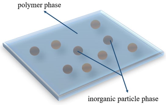 Metal-organic frameworks are classified as polycrystalline and mixed matrix films. The separation process relies on the pores in the dense polycrystalline films and follows a dissolution-diffusion mechanism. Figure 5 shows that the solvent and solute do not interact, and penetrate the cortex through molecular diffusion. Simultaneously, the polycrystalline film can also adsorb certain impurities in the solution. Therefore, selective adsorption and molecular sieving often coexist in most nanofiltration separation processes; known as selective adsorption-molecular sieving process. Mixed matrix membranes (MMMs) (Figure 6) are formed by metal-organic framework nanocrystals uniformly embedded in an organic polymer matrix. The principle is to use the difference in the dissolution and diffusion rates in the membrane to achieve separation under the pressure difference between the two phases.