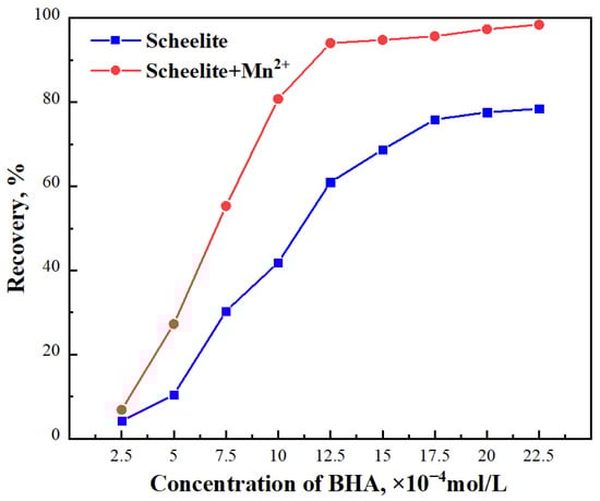 Effect of BHA concentration on the recovery of scheelite flotation.