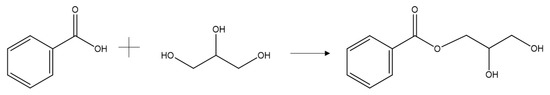 Example of proposed chemical pathway rationalizing the formation of a reaction product, 2,3-dihydroxypropyl benzoate.