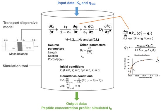 However, the separation and purification of peptides can be time consuming, expensive and uncertain. Hence, chromatography modelling and simulation can be used for predicting separation. Generally, transport dispersive model and cascade of continuous stirred-tank reactors model can be used for designing liquid chromatography separation. Furthermore, the knowledge of sorption isotherms is important for simulating chromatography separation, and they can be determined by static methods such as batch, adsorption-desorption or dynamic methods such as frontal analysis, perturbation, dispersed front analysis and chromatogram fitting [7,8]. However, these methods require a significant amount of sample and experimental effort. Given that the samples usually investigated in chromatography separation are expensive (e.g., therapeutic proteins, peptides), novel approaches to determine sorption isotherm were developed, such as direct inverse method [9], microfluidic chip approach [10] and modern biosensors methods such as SPR and quartz crystal microbalance [11].