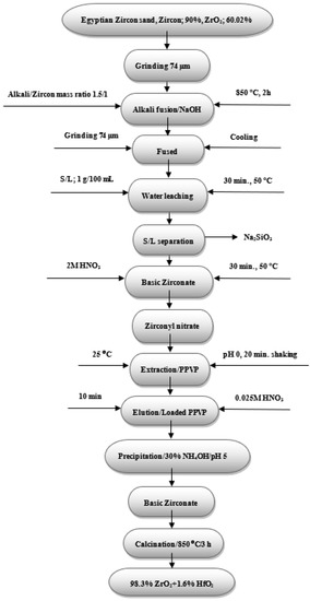 - Abdel-Rehim, A.M. A new technique for extracting Zirconium form Egyptian zircon concentrate. Int. J. Miner. Process. 2005, 76, 234–243. [Google Scholar] [CrossRef]