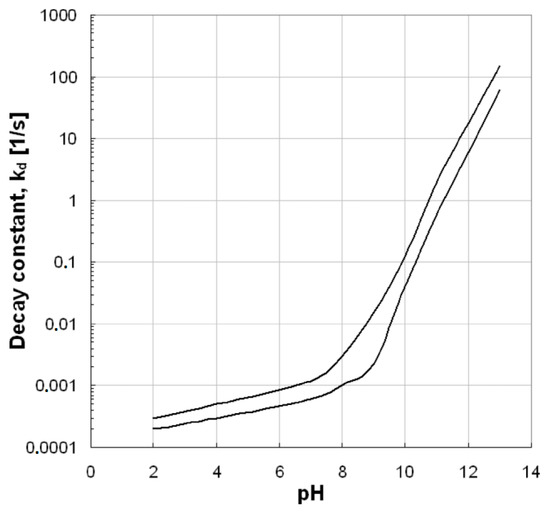 The pH value is a very important factor for ozonation processes because it can highly affect the decomposition of ozone, as well as the surface properties of used solid materials/catalysts (e.g., the point-of-zero charge/PZC) and the charge of the examined organic compounds. Additionally, it affects the electrostatic interactions between the pollutant and the catalyst surface [8,18]. As Figure 3 shows, the increase of pH value can lead to increased ozone decomposition, which subsequently leads to the production of more hydroxyl radicals. The hydroxyl radicals are more powerful oxidizing agents than the ozone and, therefore, when they predominate in an oxidation reaction, the process efficiency becomes higher. In contrast, the stability of ozone molecules at the acidic pH values is higher and, hence, it is more difficult to be decomposed. However, the effect provoked by the pH value mainly depends on the specific type of applied AOP. As Aziz et al. [19] showed, the single ozonation process under acidic pH values presents lower efficiency with respect to the removal of micropollutants, while the Fenton process is more effective for these pH values. In the present study, the removal of micropollutants from common aqueous matrixes is evaluated and, therefore, the pH values of respective studies are in the range of those usually encountered in natural waters (i.e., 6–8). These observations can affect not only the efficiency, but also the mechanism of the catalytic ozonation process. More information about the effect of pH value on ozone decomposition and the subsequent production of hydroxyl radicals can be found in the aforementioned reference [19].