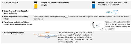 - Kruve, A. Strategies for Drawing Quantitative Conclusions from Nontargeted Liquid Chromatography-High-Resolution Mass Spectrometry Analysis. Anal. Chem. 2020, 92, 4691–4699. [Google Scholar] [CrossRef]