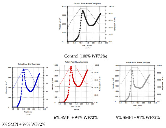 3.2. Rheological Characteristics of Blends from Wheat Flour with SMPI