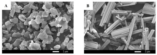 SEM images of (A) product 1 and (B) product 2.