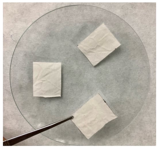 Hydrophilic 100% cellulose Muslin cotton fabric was used as the substrate for sol-gel sorbent coating. Commercial cotton cellulose fabric contains different surface finishing chemicals as well as other additives to improve the overall appearance of the fabric. However, these chemicals conceal a significant portion of surface hydroxyl functional group and need to be removed to maximize the surface hydroxyl group prior to the sol-gel sorbent coating. The detailed surface treatment process of cellulose fabric is presented elsewhere [,].