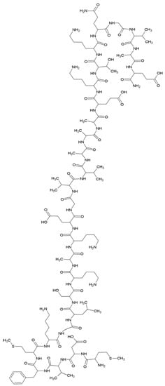 - Lin, H.-J.; Huang, T.-C.; Muthusamy, S.; Lee, J.-F.; Duann, Y.-F.; Lin, C.-H. Piscidin-1, an antimicrobial peptide from fish (Hybrid Striped Bass Moronesaxatilis x M. chrysops), induces apoptotic and necrotic activity in HT1080 cells. Zool. Sci. 2012, 29, 327–332. [Google Scholar] [CrossRef] [PubMed]